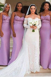 Robe Demoiselle d'Honneur Longueur au sol Col en V A-ligne Fourreau pliRobe Demoiselle d'Honneur Longueur au sol Col en V A-ligne Fourreau pli