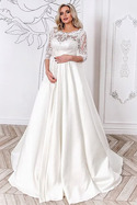 Robe de mariée Col ras du Cou Sans Manches Satin A-ligne Longueur ras du SolUne robe de mariée tellement magnifique, j'étais si heureuse quand je l'ai reçue, l'expédition a pris moins de 10 jours, ce qui était bien. J'avais peur d'aller en ligne pour acheter ma robe, mais tout s'est plutôt bien passé !